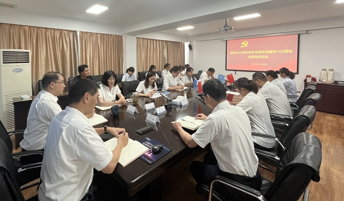 为庆祝中国共产党成立102周年,深入学习贯彻习近平新时代中国特色社会主义思想和党的二十大精神,增强党组织的凝聚力和战斗力,7月5日下午,中国十七冶建安分公司机关党支部开展庆祝建党102周年主题党日暨党课活动,分公司在马全体党员参加。