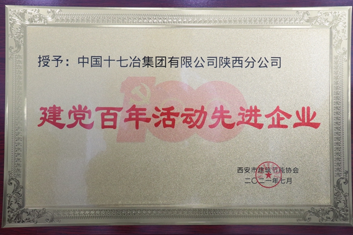近日,中国十七冶集团陕西分公司荣获西安市建筑节能协会颁发的“建党百年活动先进企业”称号,徐钢绪、麻庭泉等两位同志荣获“建党百年活动先进个人”称号。
