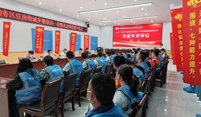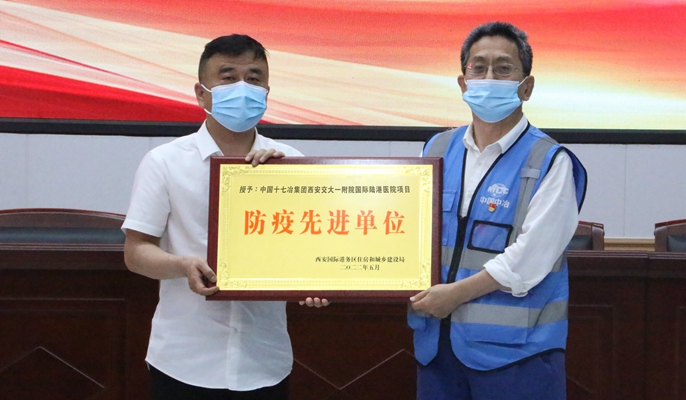 5月25日上午,中国十七冶集团陕西分公司西安交通大学第一附属医院国际陆港医院项目部被西安国际港务区住房和城乡建设局授予“防疫先进单位”称号。西安国际港务区住房和城乡建设局副局长李渊,业主、监理单位相关负责人等出席了表彰仪式。