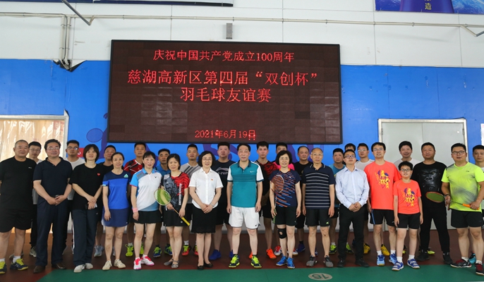 为热烈庆祝中国共产党成立100周年,积极营造良好的文化氛围,6月19日上午,中冶置业(安徽)公司联合慈湖高新区管委会联合举办了“庆建党100周年暨第四届双创杯羽毛球友谊赛”活动,慈湖高新区管委会党群工作部部长黄海斌、工会主席徐国府,中冶置业(安徽)公司党委书记徐良蓉等人参加活动。