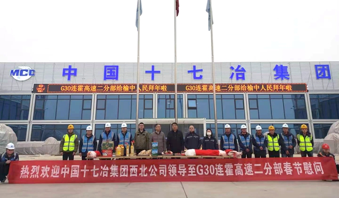 1月26日,十七冶副总经济师、西北公司党委副书记、工会主席、兰州连霍清忠段高速公路建设发展有限公司董事长孙才文带队到连霍高速兰州清忠段施工总承包项目二分部慰问春节值守员工,详细听取项目春节期间工作安排及防疫、生活物资储备情况汇报,并代表公司工会对一线员工送上慰问品,感谢大家春节不停工推进项目建设做出的积极贡献。