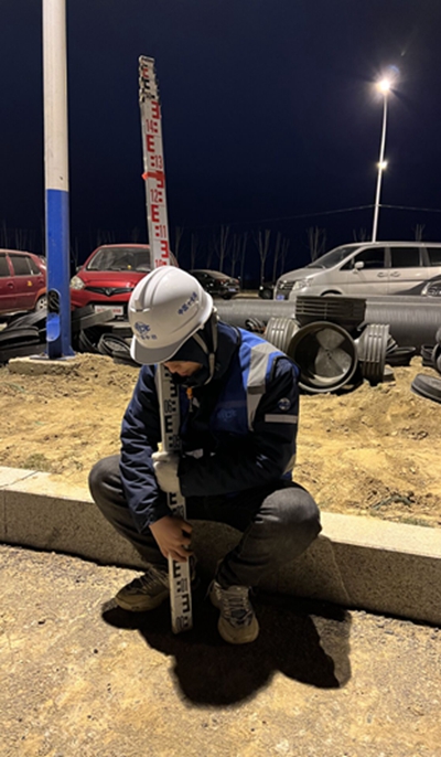 奋战一整天完成测量任务后在路边睡着的技术员赵国磊