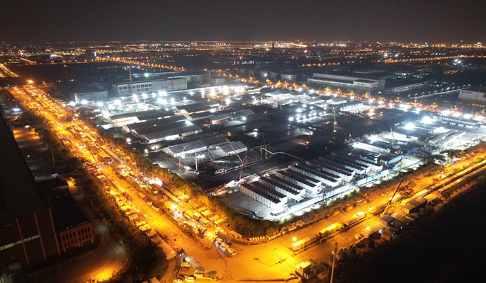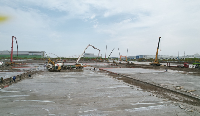 持续工作到深夜,此时休息也是大问题。大干第一天,很多后勤物资还不能满足现场需要。人多房少,大家有的就到大巴车上“凑合”一觉,醒来再轮班休息,确保施工不停歇。经过全体人员的不懈努力,十七冶仅用46个小时,就完成临港方舱的全部地坪浇筑任务,顺利打赢了工程建设的第一战,为后面的方舱安装赢得了时间。