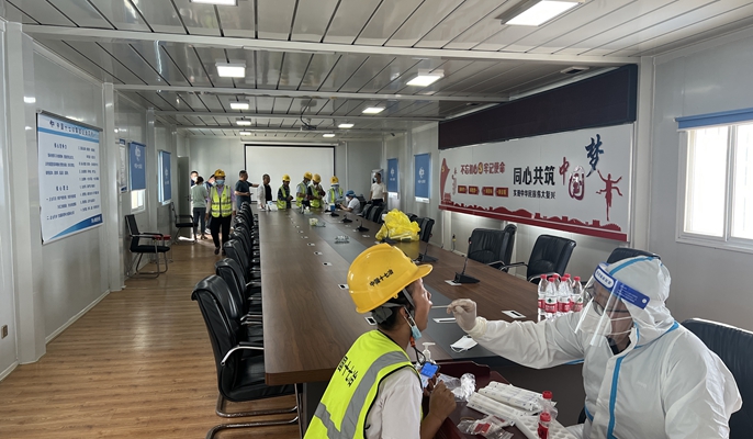 建筑工地人员聚集,流动性大,是防疫的重点区域。项目部严格按照“应检尽检、不漏一人”的原则,确保无遗漏、零死角,最大限度降低传播风险。项目部表示,只有为工人提供一个安全的作业环境,才能保障施工生产的顺利,确保预定目标尽早完成。